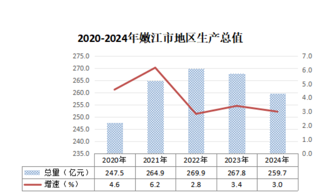 經(jīng)濟總量繼續(xù)保持平穩(wěn)增長。2024年全市地區(qū)生產(chǎn)總值達到2596880萬元,同比增長3.0%(按可比價格計算)。其中:第一產(chǎn)業(yè)增加值985775萬元,同比增長3.0%,對經(jīng)濟增長的貢獻率是52.6%。第二產(chǎn)業(yè)增加值484196萬元,同比增長0.3%,對經(jīng)濟增長的貢獻率是1.5%。第三產(chǎn)業(yè)增加值1126909萬元,同比增長4.0%,對經(jīng)濟增長的貢獻率是45.9%。三次產(chǎn)業(yè)結(jié)構(gòu)由2023年的45.9:16.9:37.2調(diào)整為38.0:18.6:43.4。