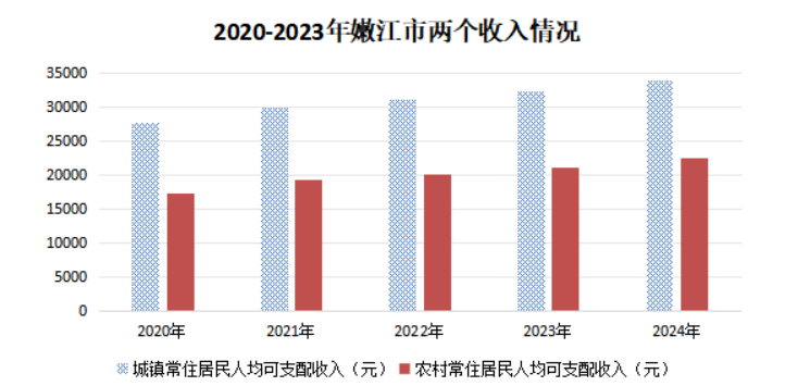 城鄉(xiāng)居民生活水平不斷提高。2024年城鎮(zhèn)常住居民人均可支配收入33854元,同比增長4.7%;農(nóng)村常住居民人均可支配收入22373元,同比增長5.8%。