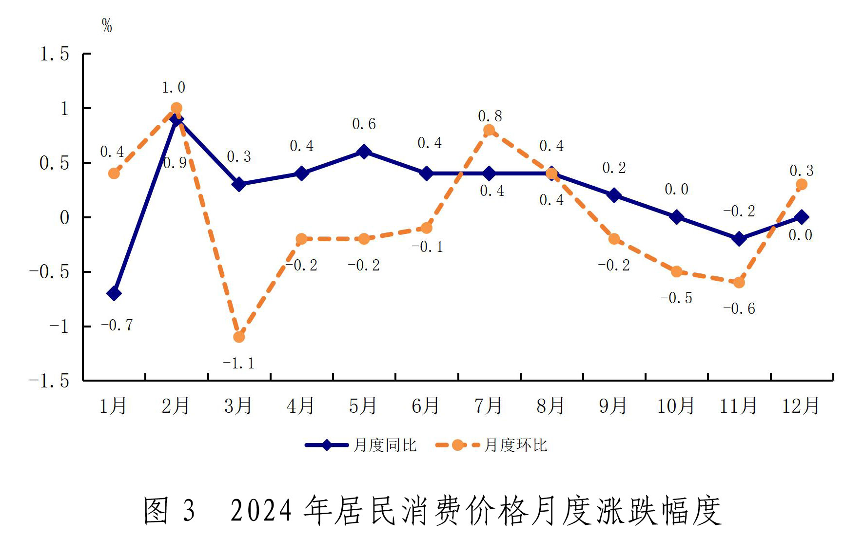 以舊換新政策效果明顯。全年社會(huì)消費(fèi)品零售總額比上年下降3.1%。消費(fèi)品以舊換新政策持續(xù)發(fā)力,限額以上單位新能源汽車、家用電器和音像器材類零售額分別增長22.7%和14.8%。部分升級(jí)類商品銷售較好,限額以上單位化妝品類零售額增長32.3%,文化辦公用品類增長24.6%,可穿戴智能設(shè)備增長3.9倍。網(wǎng)上訂單較快增長,限額以上住宿和餐飲業(yè)單位通過公共網(wǎng)絡(luò)實(shí)現(xiàn)的客房收入和餐費(fèi)收入分別增長15.1%和1.1倍。