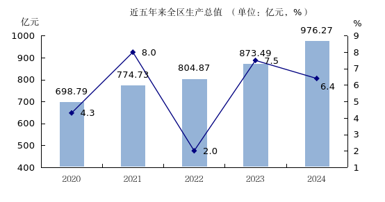 全年實(shí)現(xiàn)地區(qū)生產(chǎn)總值(GDP)976.27億元,按可比價(jià)計(jì)算(下同),同比增長(zhǎng)6.4%。其中,第一產(chǎn)業(yè)增加值7.96億元,增長(zhǎng)6.2%;第二產(chǎn)業(yè)增加值285.82億元,增長(zhǎng)7.3%;第三產(chǎn)業(yè)增加值682.48億元,增長(zhǎng)6.0%。三次產(chǎn)業(yè)結(jié)構(gòu)為0.8:29.9:69.2。按常住人口計(jì)算,人均地區(qū)生產(chǎn)總值96708元(按年平均匯率折算13579美元),增長(zhǎng)4.6%。全年固定資產(chǎn)投資下降10.0%;全社會(huì)消費(fèi)品零售總額428.90億元,增長(zhǎng)5.3%;外貿(mào)進(jìn)出口總額395.07億元,增長(zhǎng)2.7%;財(cái)政總收入69.76億元,增長(zhǎng)0.9%(同口徑),其中一般公共預(yù)算收入42.90億元,增長(zhǎng)0.1%(同口徑);城鎮(zhèn)常住居民人均可支配收入84207元,增長(zhǎng)4.4%,農(nóng)村常住居民人均可支配收入53418元,增長(zhǎng)6.3%,城鄉(xiāng)居民收入差距進(jìn)一步縮小,城鄉(xiāng)居民人均可支配收入倍差1.58,比去年同期縮小0.03。全年全社會(huì)用電量59.47億千瓦時(shí),增長(zhǎng)9.0%。其中工業(yè)用電量25.49億千瓦時(shí),增長(zhǎng)6.4%,占全社會(huì)用電量的42.9%;城鄉(xiāng)居民生活用電量14.20億千瓦時(shí),增長(zhǎng)12.8%。全區(qū)在冊(cè)市場(chǎng)主體126578戶,居全市第7,其中企業(yè)42418戶,現(xiàn)有公司制企業(yè)數(shù)量在企業(yè)中的占比由上年同期的92.5%提高至94.5%。