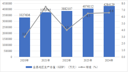 圖1??2020-2024年全縣地區(qū)生產(chǎn)總值及其增長速度