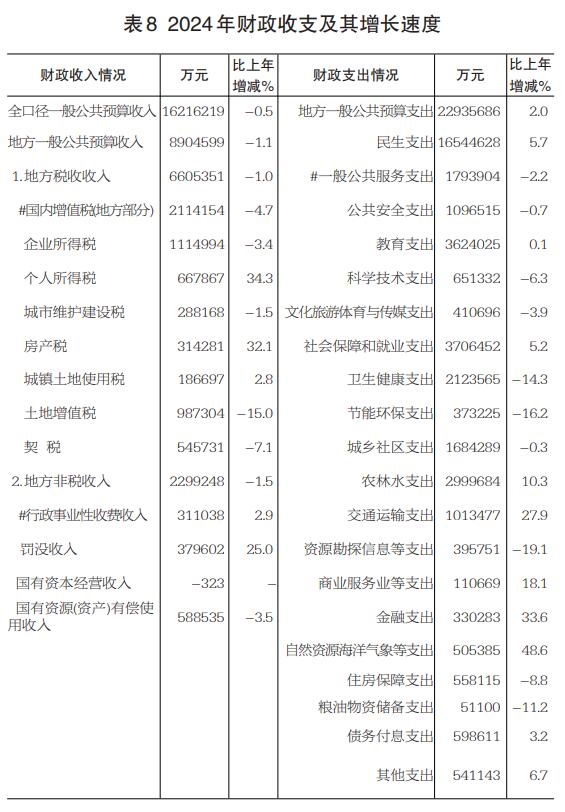 全年全省全口徑一般公共預(yù)算收入1621.62億元,比上年下降0.5%。其中,地方一般公共預(yù)算收入890.46億元,下降1.1%。地方一般公共預(yù)算收入中,稅收收入660.54億元,下降1.0%;非稅收入229.92億元,下降1.5%。全省地方一般公共預(yù)算支出2293.57億元,比上年增長(zhǎng)2.0%。