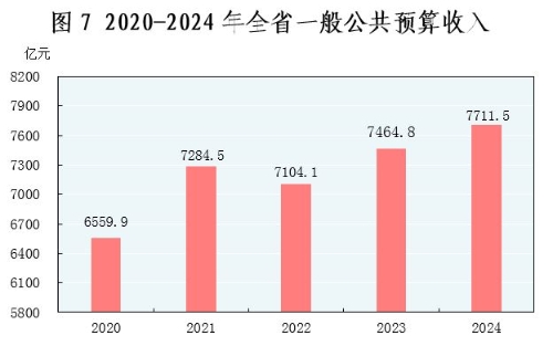 全年全省一般公共預算收入7711.5億元,比上年增長3.3%。其中,稅收收入5039.6億元,下降3.6%。一般公共預算支出13077.2億元,增長3.9%。其中,民生支出10368億元,占財政支出的比重為79.3%。交通運輸、城鄉(xiāng)社區(qū)、農(nóng)林水等支出增長較快。