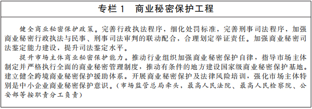 健全知識產(chǎn)權(quán)法律法規(guī)。開展知識產(chǎn)權(quán)基礎(chǔ)性法律研究。統(tǒng)籌推進專利法、商標法、著作權(quán)法、反壟斷法、科學(xué)技術(shù)進步法、電子商務(wù)法等相關(guān)法律法規(guī)的修改完善。加強地理標志、商業(yè)秘密等領(lǐng)域立法,出臺商業(yè)秘密保護規(guī)定。完善集成電路布圖設(shè)計法規(guī)。推進修訂植物新品種保護條例。制定中醫(yī)藥傳統(tǒng)知識保護條例。完善與國防建設(shè)相銜接的知識產(chǎn)權(quán)法律制度。全面建立并實施知識產(chǎn)權(quán)侵權(quán)懲罰性賠償制度,加大損害賠償力度。研究建立健全符合知識產(chǎn)權(quán)審判規(guī)律的特別程序法律制度。適應(yīng)科技進步和經(jīng)濟社會發(fā)展需要,依法及時推動知識產(chǎn)權(quán)法律法規(guī)立改廢釋。(中央宣傳部、最高人民法院、最高人民檢察院、科技部、工業(yè)和信息化部、司法部、農(nóng)業(yè)農(nóng)村部、商務(wù)部、國家衛(wèi)生健康委、市場監(jiān)管總局、國家國防科工局、國家林草局、國家中醫(yī)藥局、國家知識產(chǎn)權(quán)局、中央軍委裝備發(fā)展部等按職責分工負責)