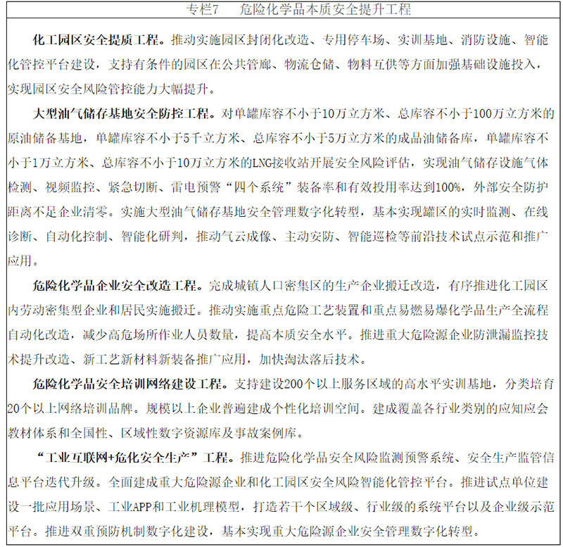 (一)化工園區(qū)安全提質(zhì)工程。