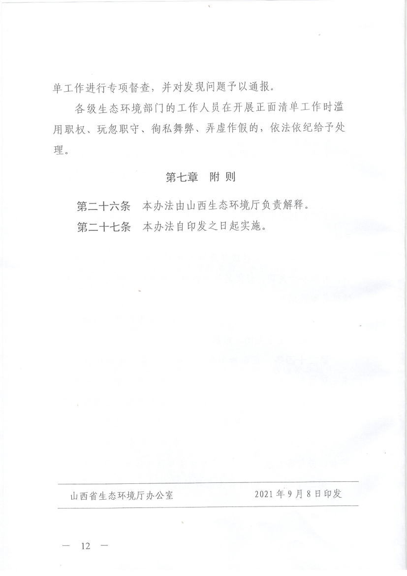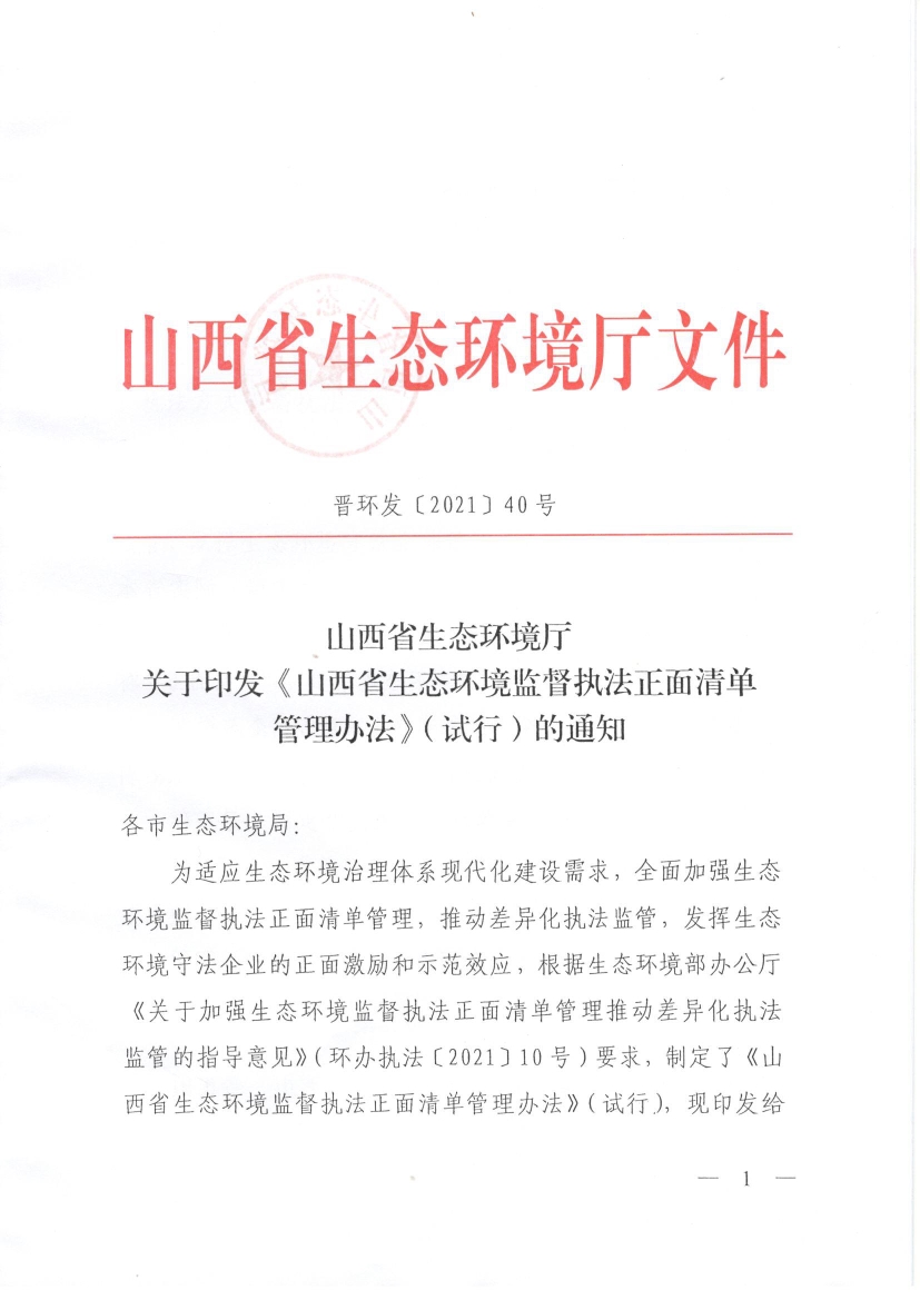 《山西省 生態(tài)環(huán)境監(jiān)督執(zhí)法正面清單管理辦法(試行)》(晉環(huán)法【2021】40號(hào))