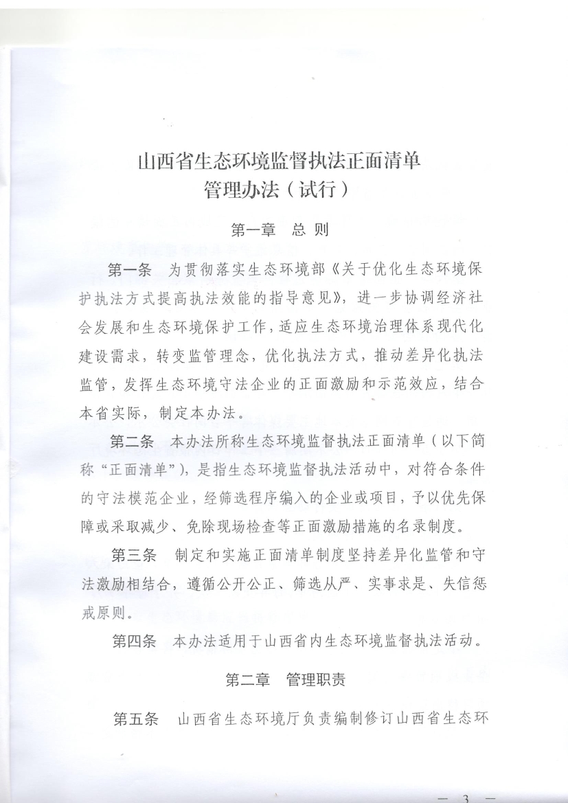 《山西省生態(tài)環(huán)境監(jiān)督執(zhí)法正面清單管理辦法》(試行)公布!