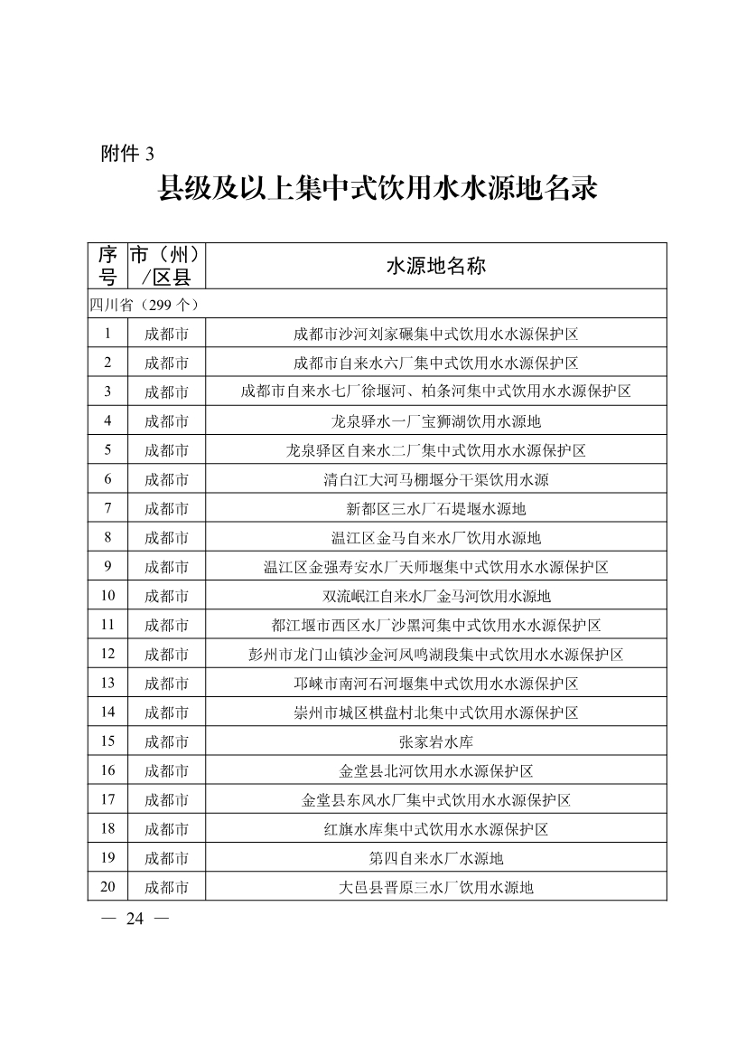3.縣級(jí)及以上集中式飲用水水源地名錄