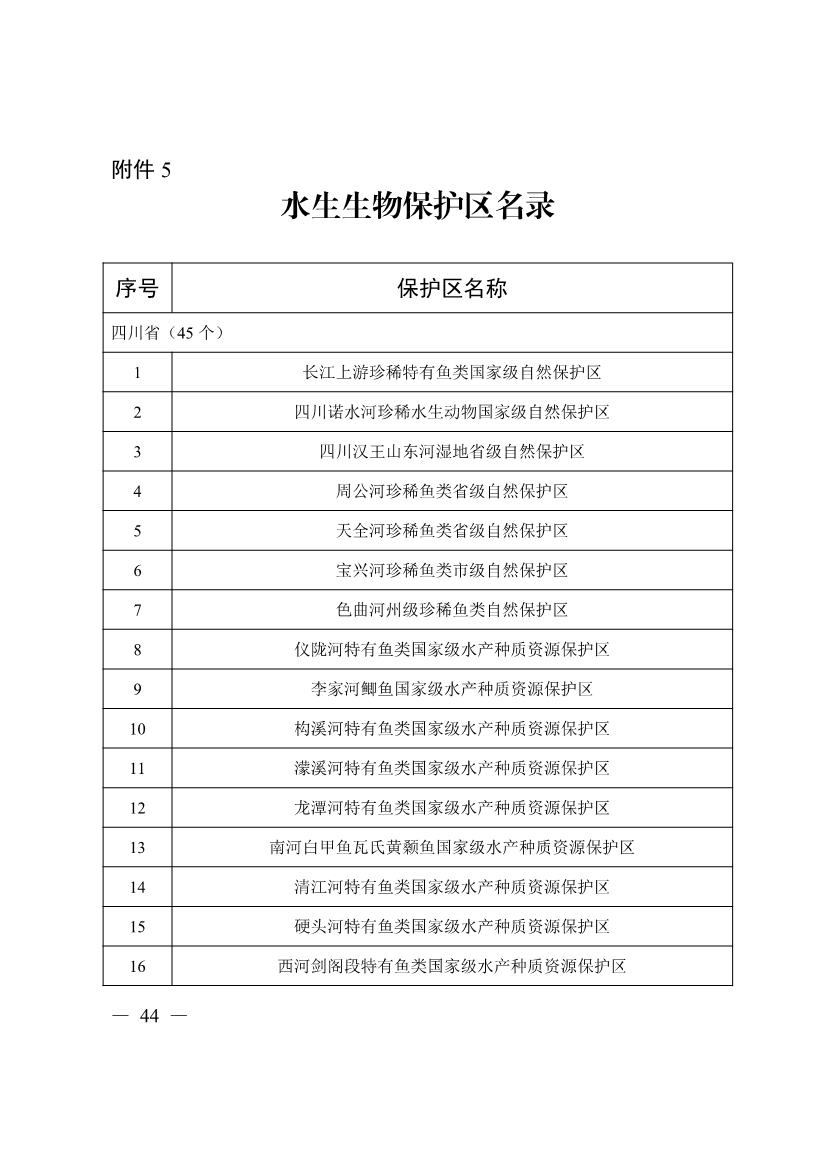 5.水生生物保護(hù)區(qū)名錄
