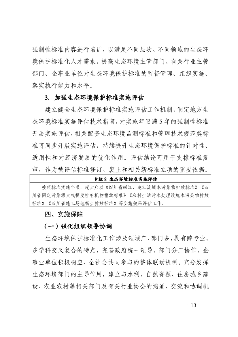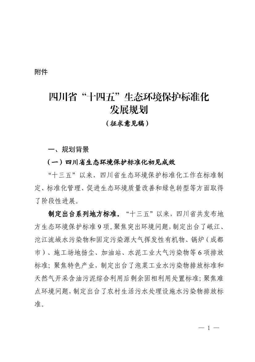 四川省“十四五”生態(tài)環(huán)境保護標準化發(fā)展規(guī)劃(征求意見稿)