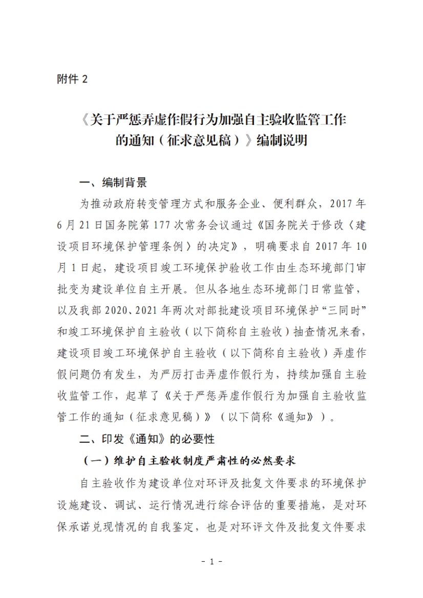 《環(huán)境部<關于嚴懲弄虛作假行為加強自主驗收監(jiān)管工作>的通知(征求意見稿)》