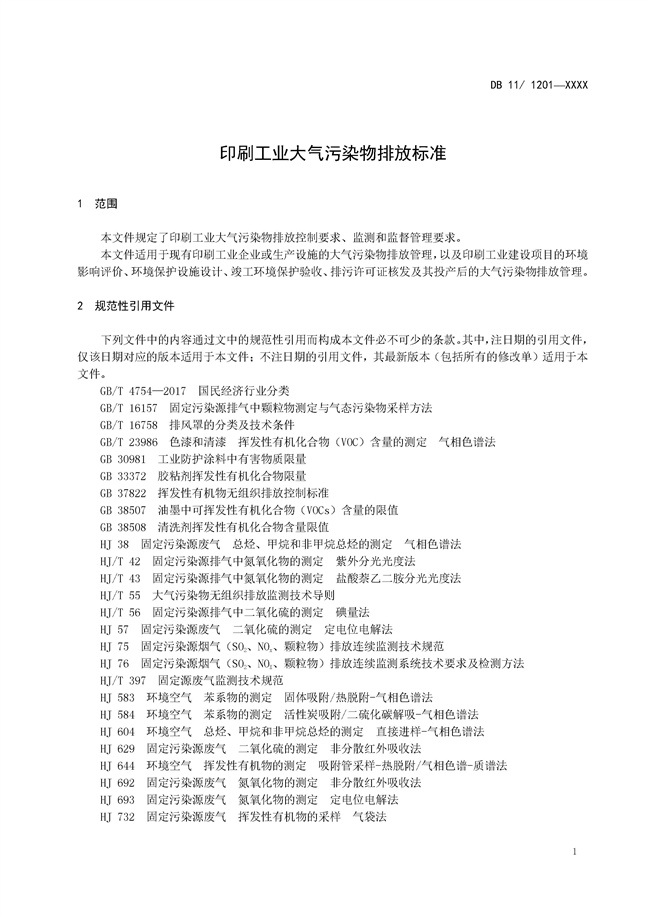 《北京市<印刷工業(yè)大氣污染物排放標(biāo)準(zhǔn) DB 11 /1201-XXXX(征求意見(jiàn)稿)》