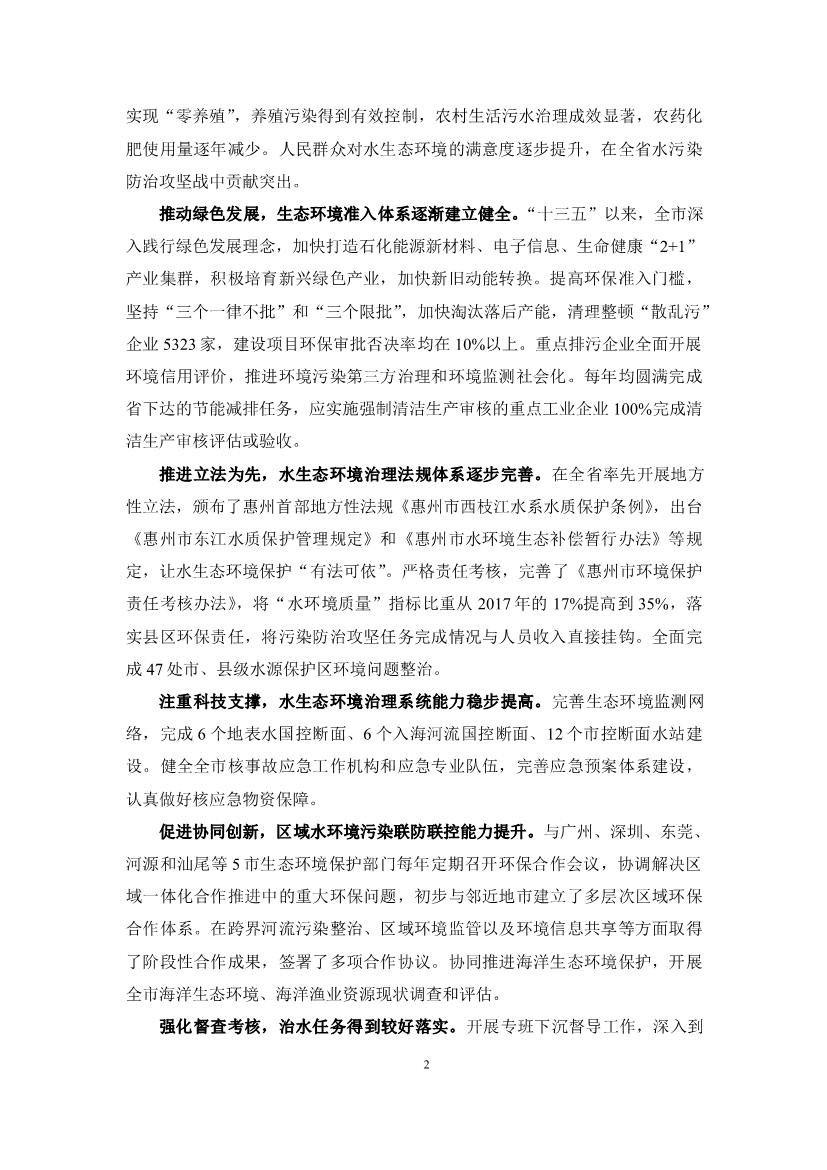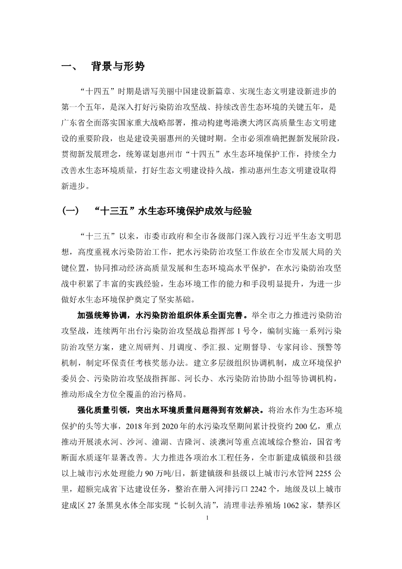 《惠州市水生態(tài)環(huán)境保護(hù)“十四五”規(guī)劃(征求意見稿)》