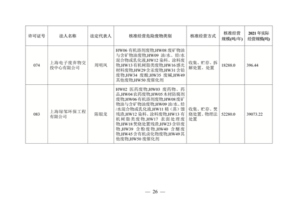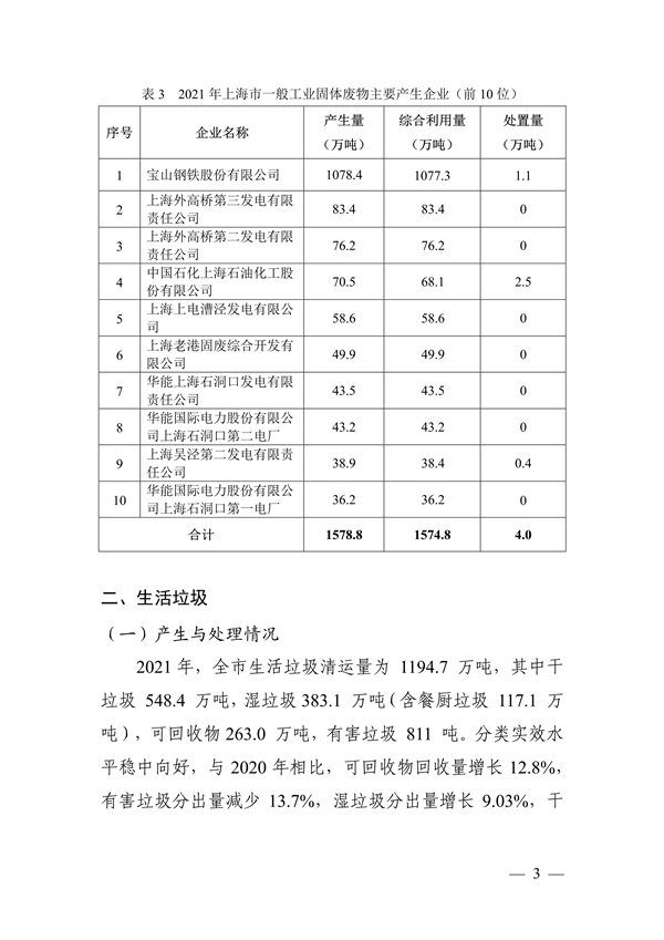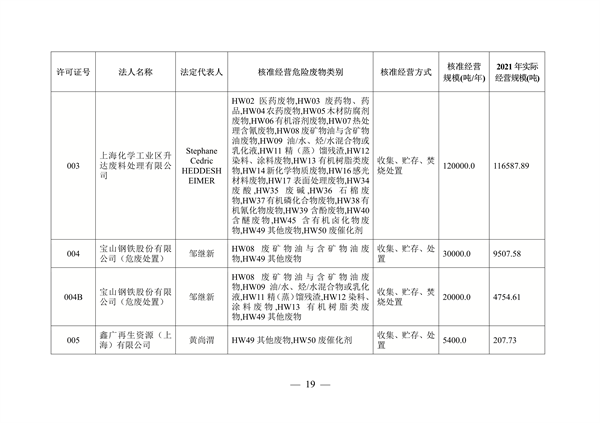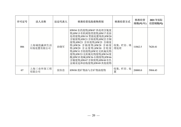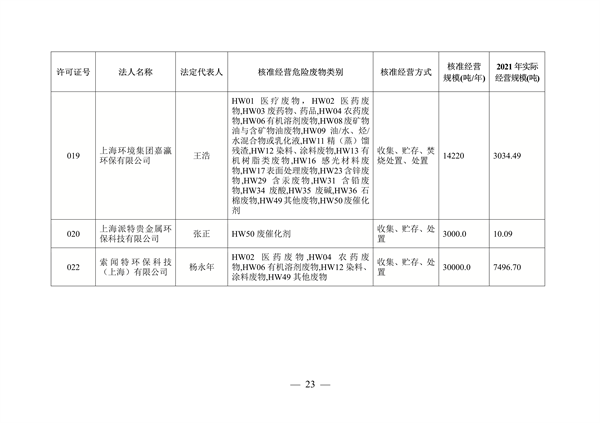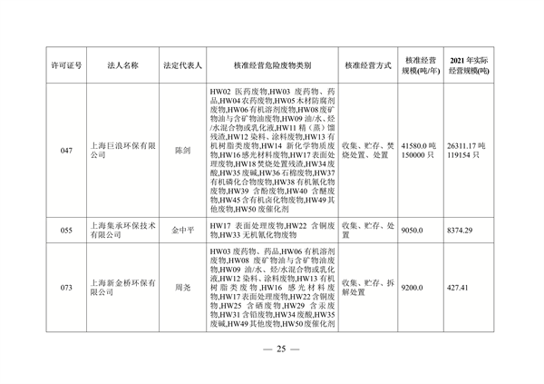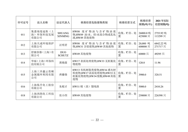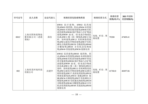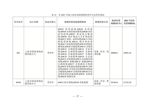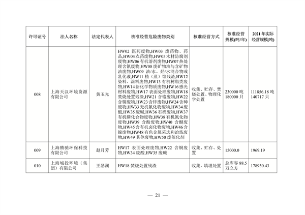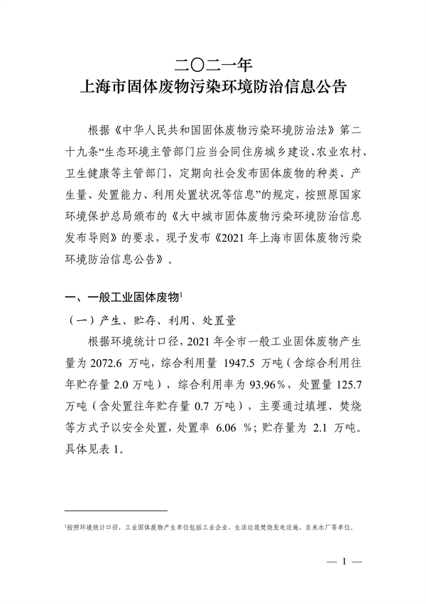 2021年上海市固體廢物污染環(huán)境防治信息公告
