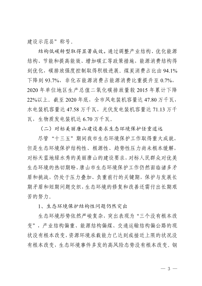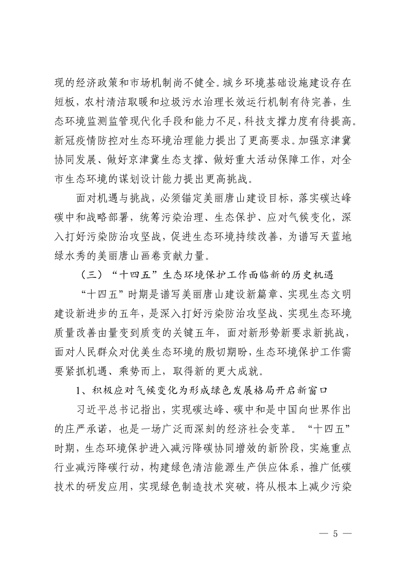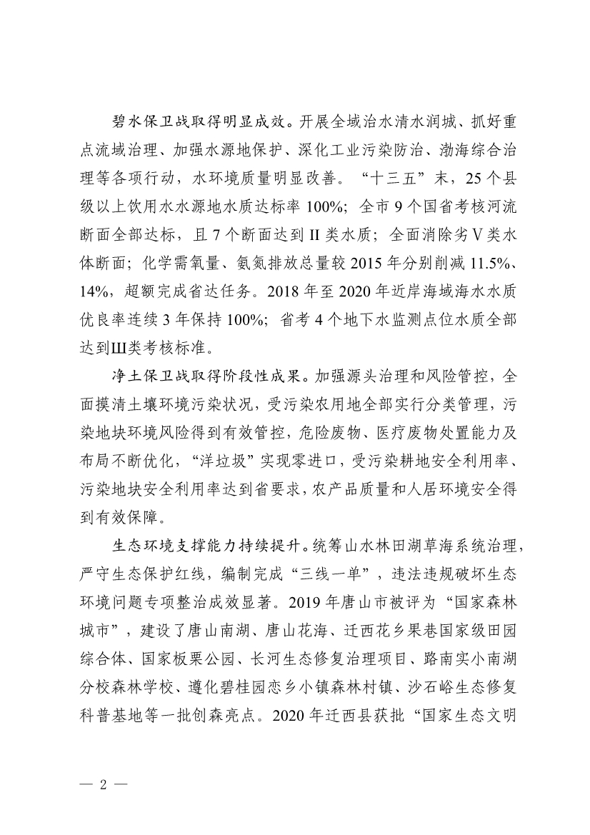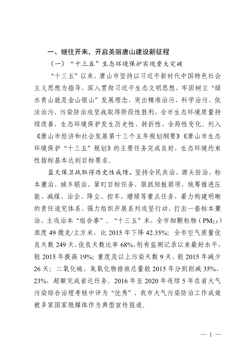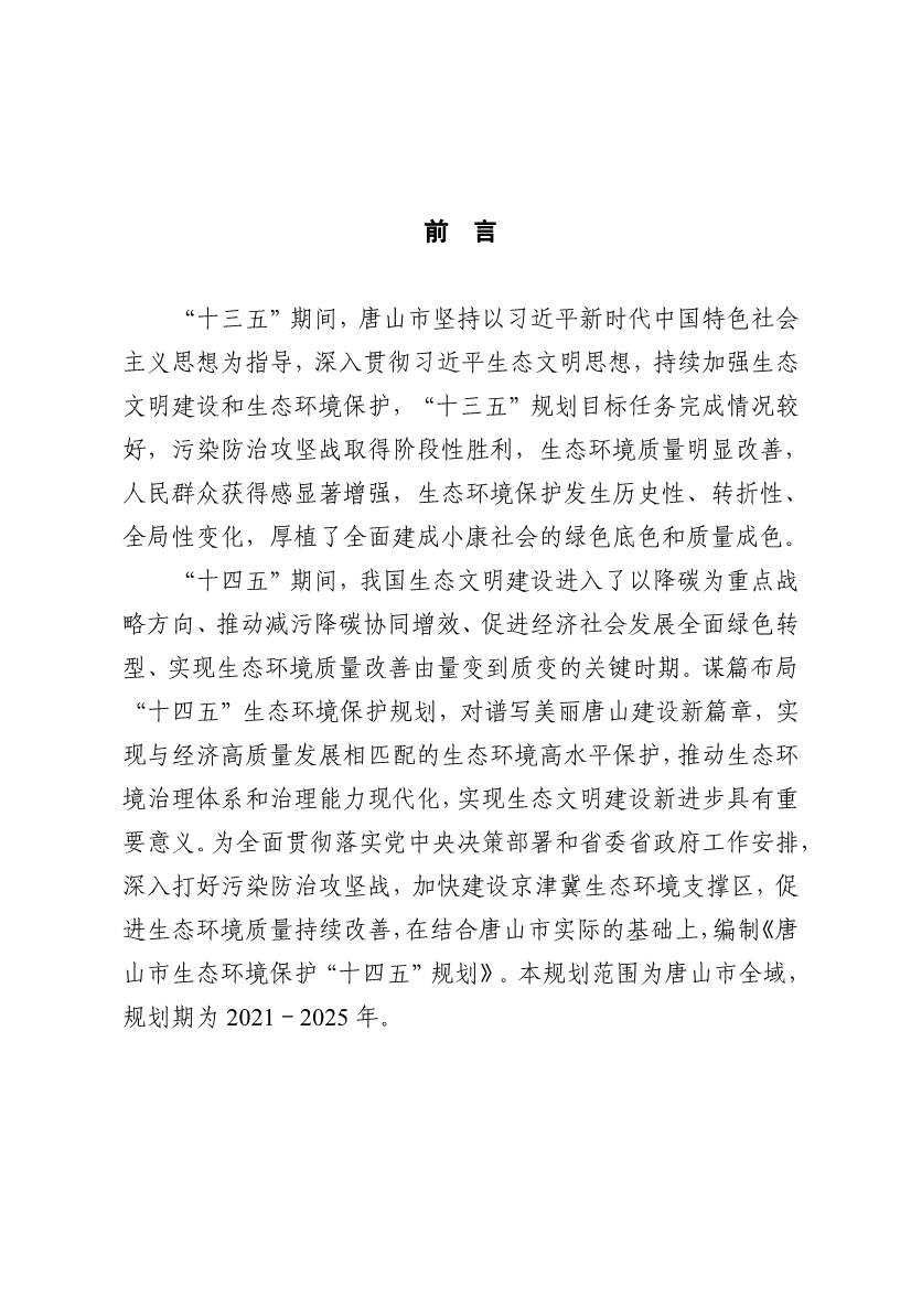 《唐山市生態(tài)環(huán)境保護(hù)”十四五“規(guī)劃》