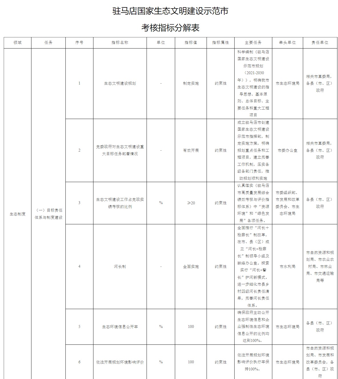 2. 駐馬店市國家生態(tài)文明建設(shè)示范市考核指標分解表