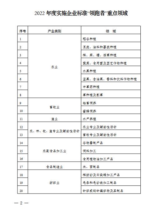 2022年度實(shí)施企業(yè)標(biāo)準(zhǔn)“領(lǐng)跑者”重點(diǎn)領(lǐng)域