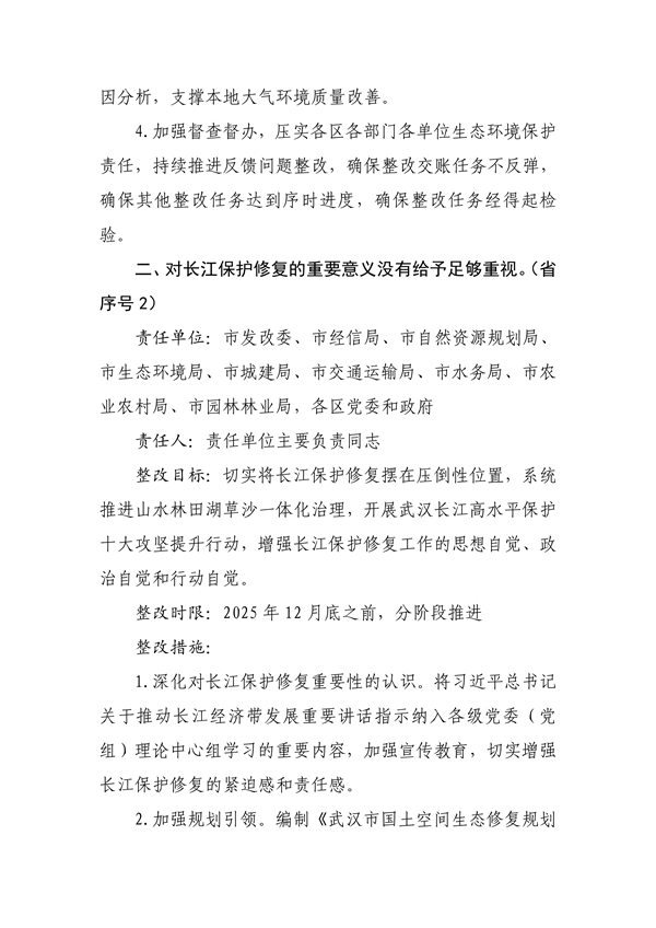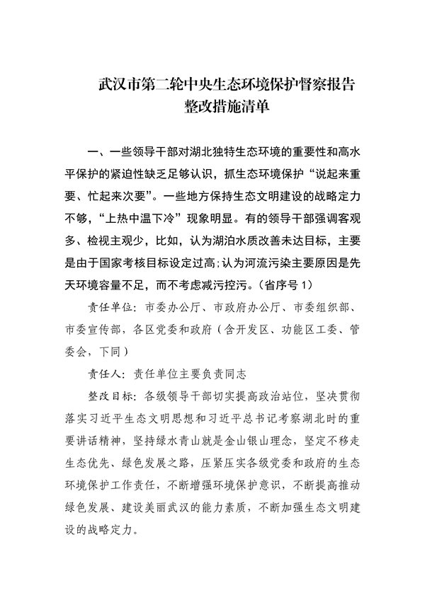 《武漢市公開第二輪中央生態(tài)環(huán)境保護(hù)督察整改方案》