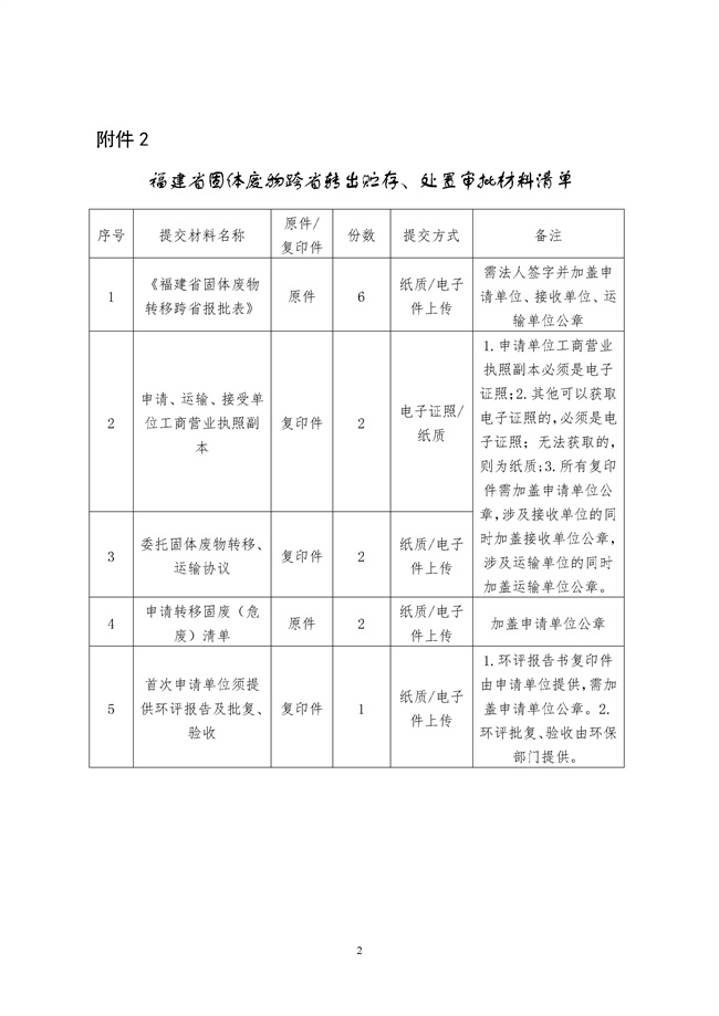 2.福建省固體廢物跨省轉(zhuǎn)出貯存、處置審批材料