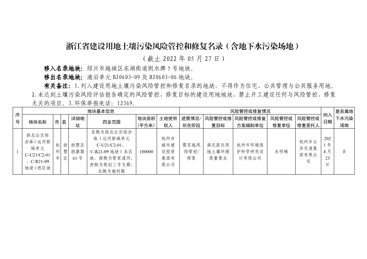 5.27更新!浙江省建設(shè)用地土壤污染風(fēng)險(xiǎn)管控和修復(fù)名錄與移出清單