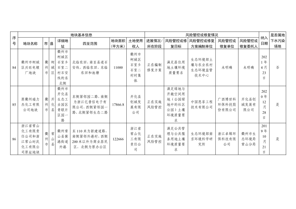 《浙江省建設(shè)用地土壤污染風(fēng)險(xiǎn)管控和修復(fù)名錄與移出清單(含地下水污染場地)》