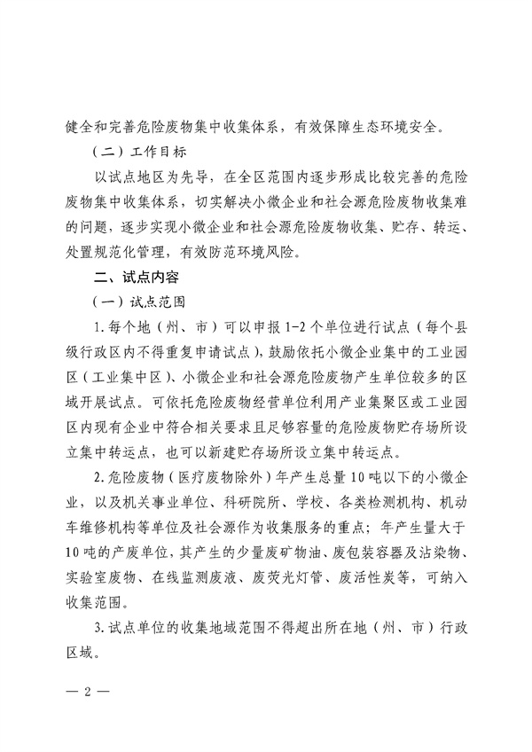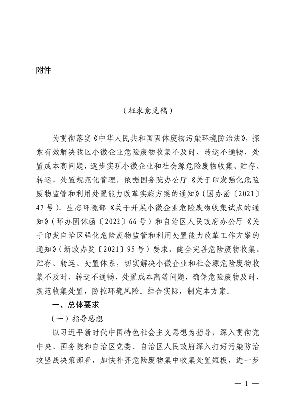 新疆小微企業(yè)危險廢物收集試點工作方案(征求意見稿)