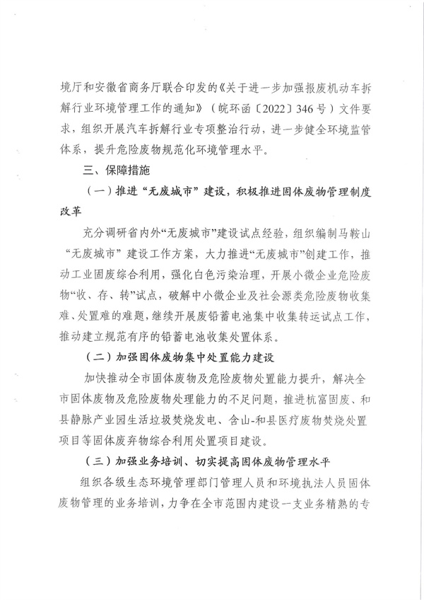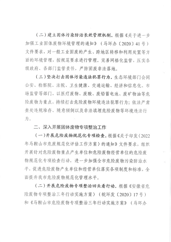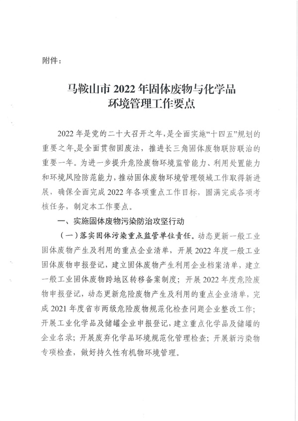 《馬鞍山市2022年固體廢物與化學品環(huán)境管理工作要點》