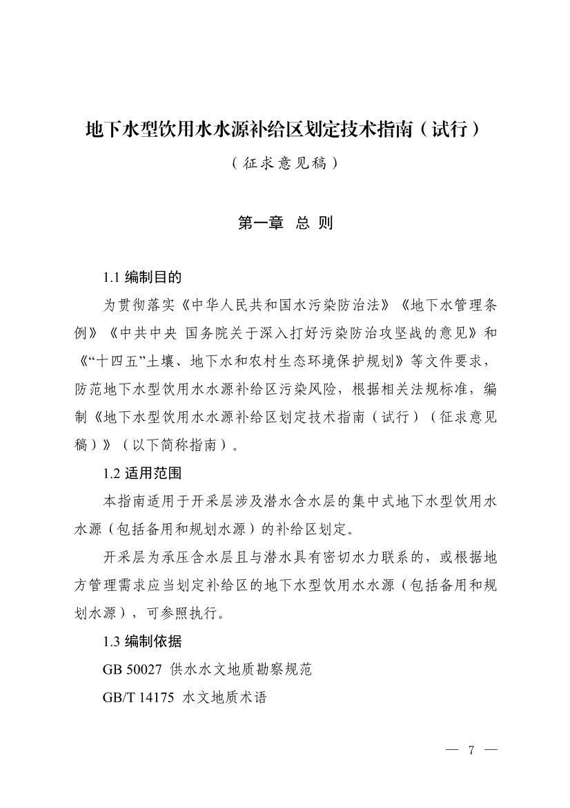 《生態(tài)環(huán)境部關于征求<地下水型飲用水水源補給區(qū)劃定技術指南(試行)(征求意見稿)>意見的函》