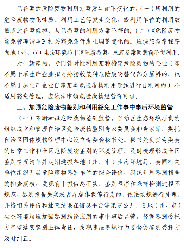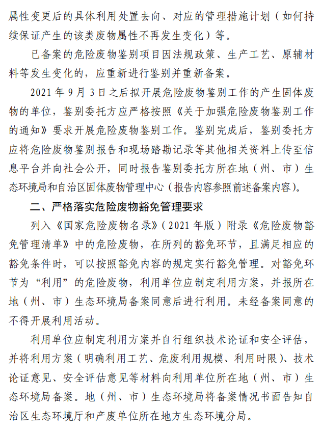 關(guān)于加強(qiáng)新疆維吾爾自治區(qū)危險(xiǎn)廢物鑒別和利用豁免有關(guān)工作的通知(征求意見(jiàn)稿)