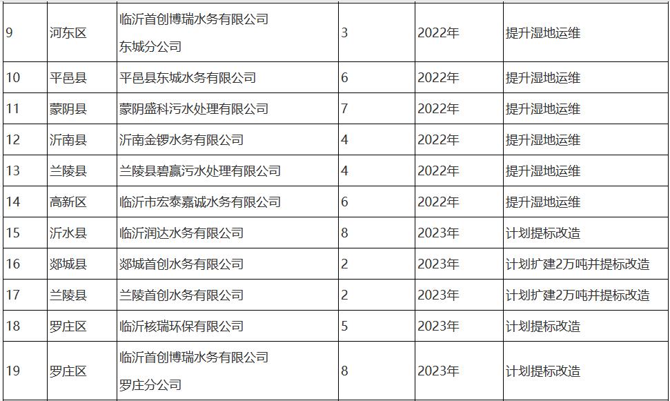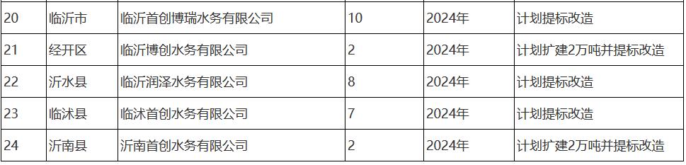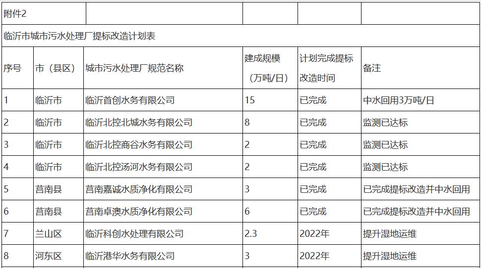 2. 臨沂市城市污水處理廠提標改造計劃表