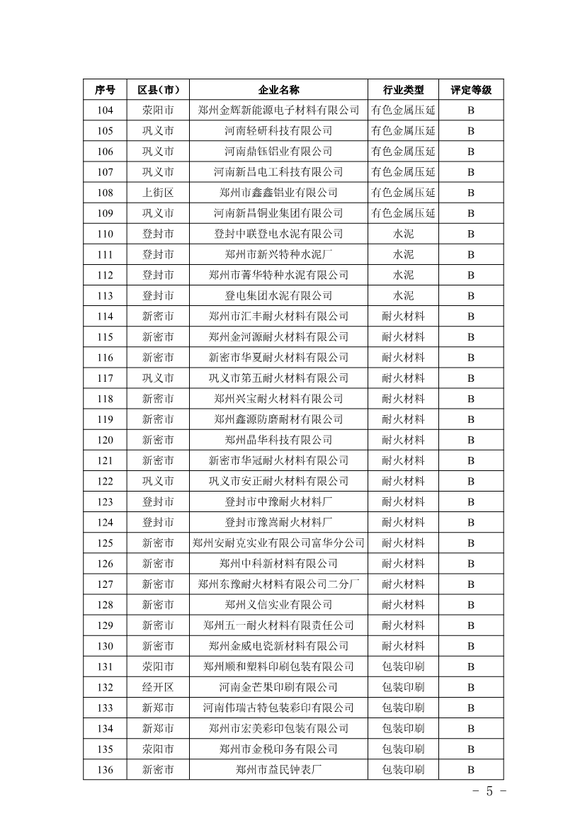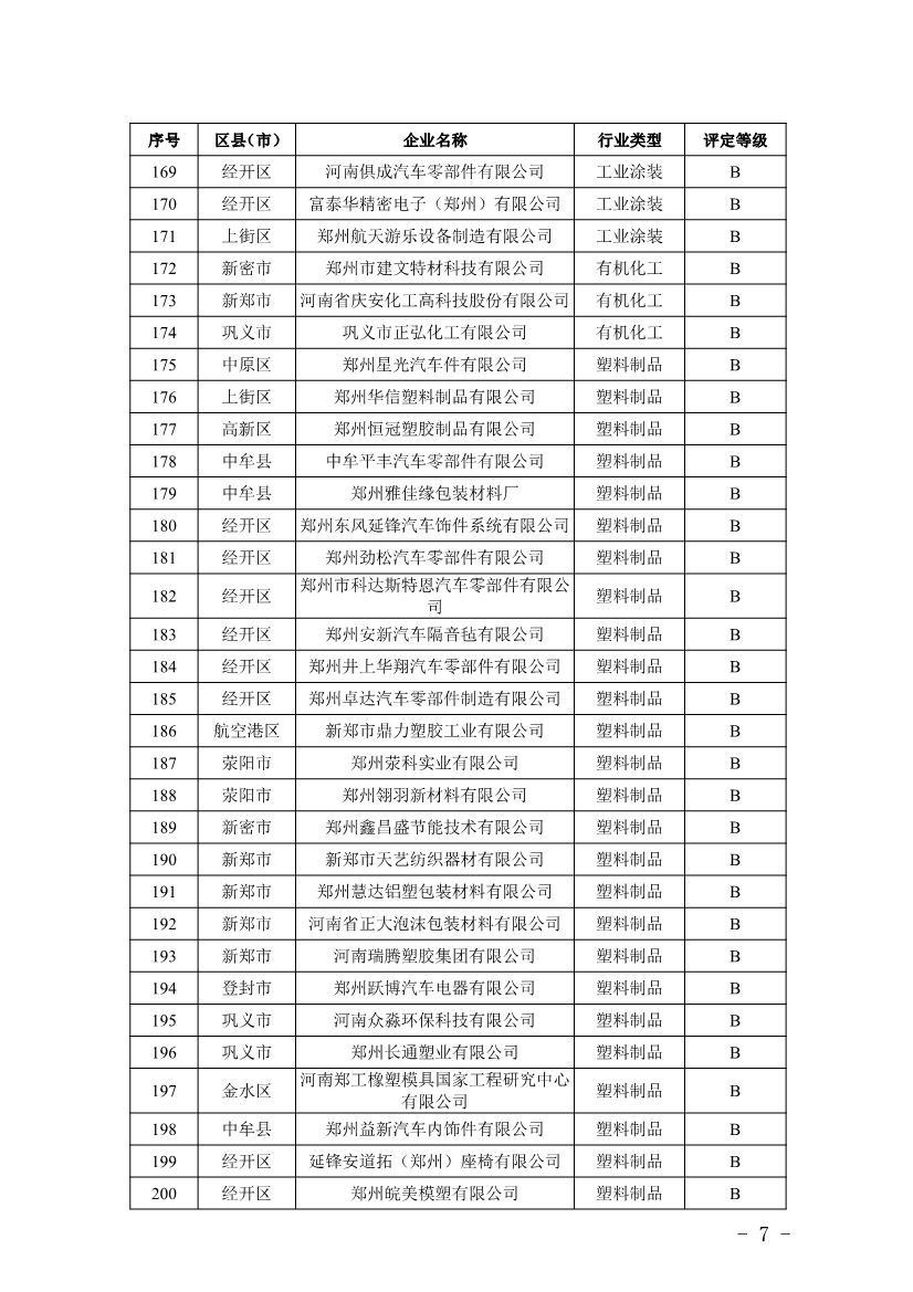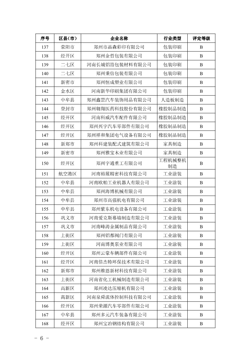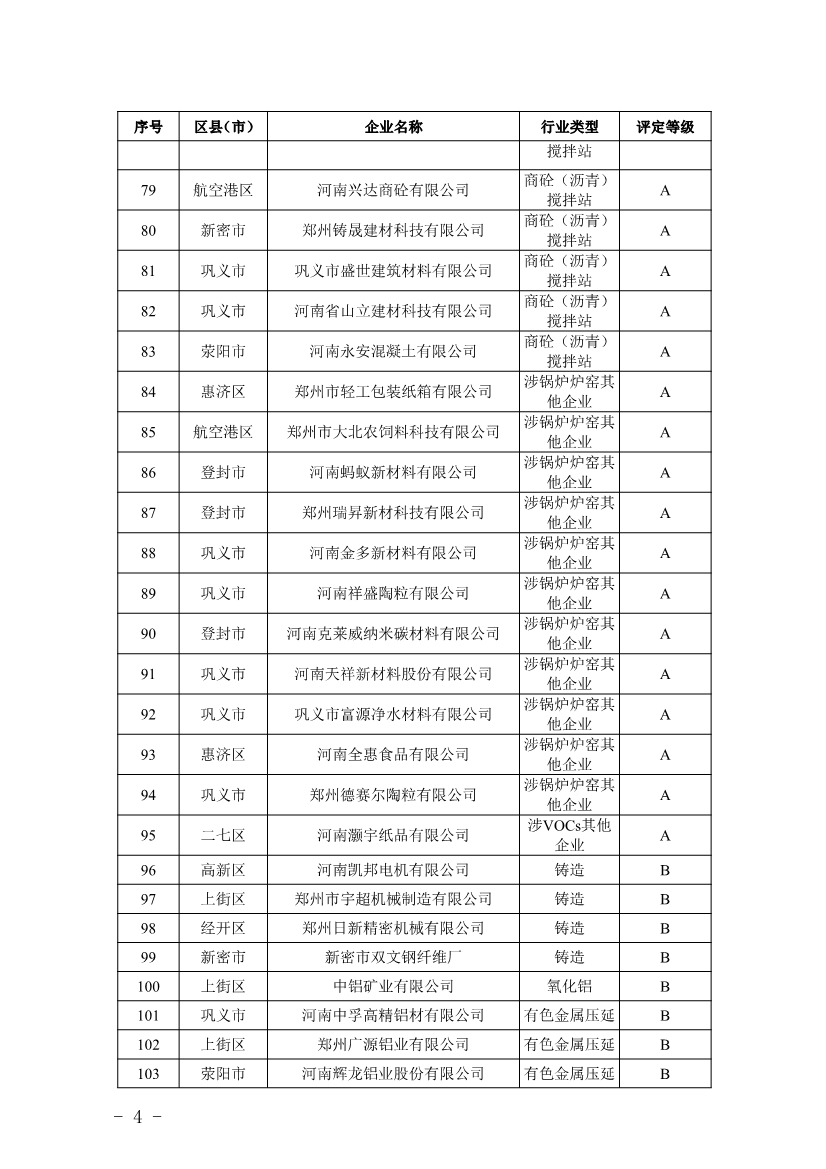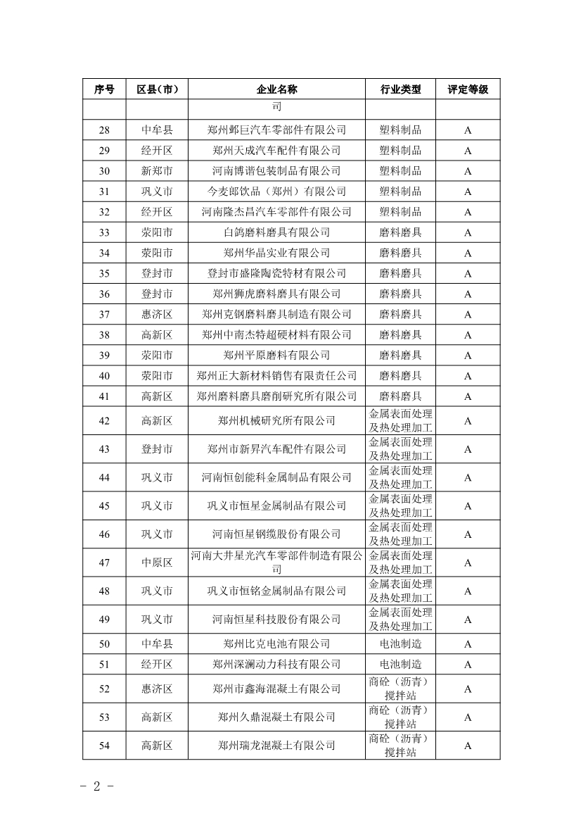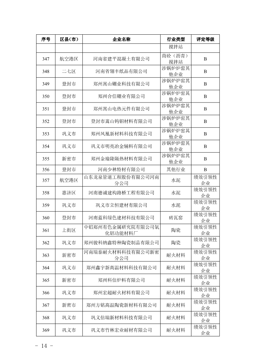 鄭州市2021年重污染天氣重點行業(yè)績效評級結(jié)果