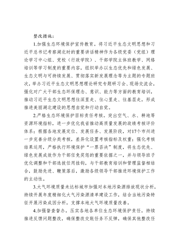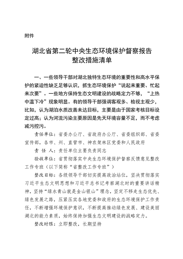 湖北省公開第二輪中央生態(tài)環(huán)境保護(hù)督察整改方案