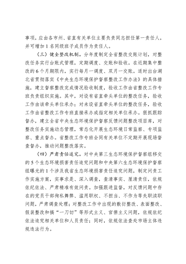 《湖北省公開第二輪中央生態(tài)環(huán)境保護(hù)督察整改方案》