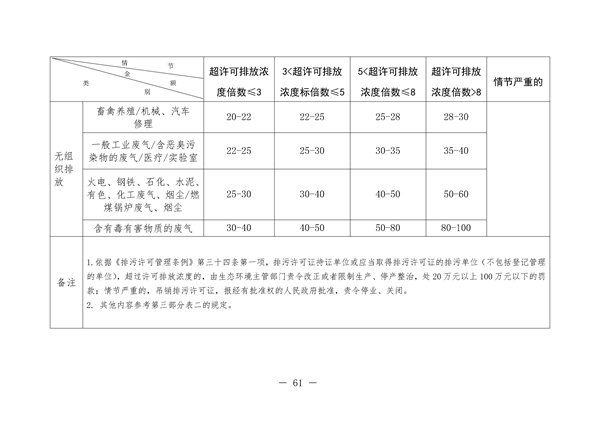 2.本基準(zhǔn)列舉了對(duì)本市常見環(huán)境違法行為的處罰裁量權(quán),未列入基準(zhǔn)的環(huán)境違法行為,參照已經(jīng)規(guī)范的裁量權(quán)的方法,通過(guò)橫向比較進(jìn)行裁量。