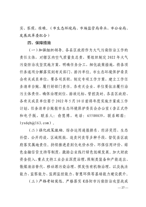 《洛陽市2022年大氣污染防治攻堅戰(zhàn)實施方案》