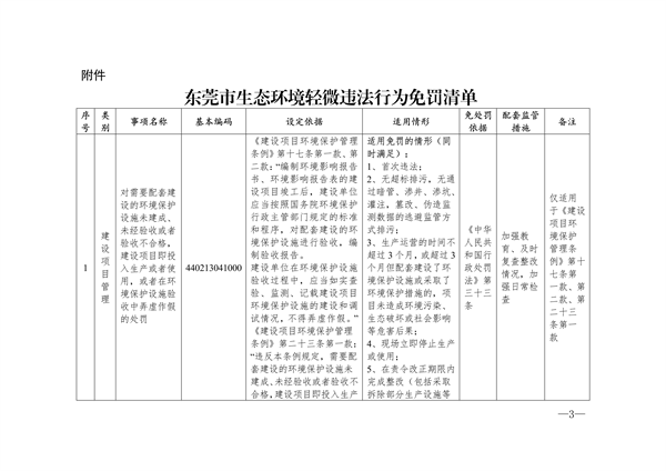 關(guān)于印發(fā)《東莞市生態(tài)環(huán)境輕微違法行為免罰清單》的通知