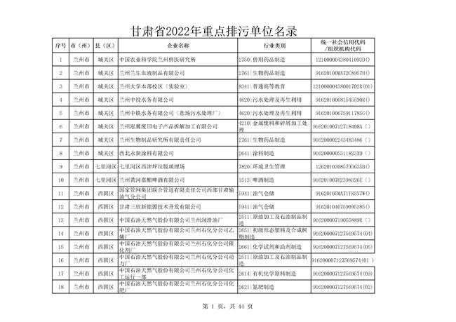 《甘肅省2022年重點(diǎn)排污單位名錄》