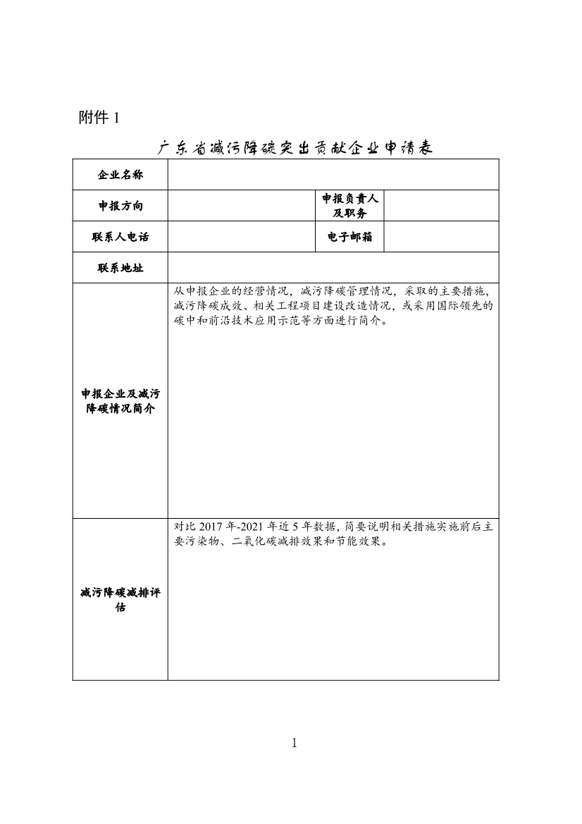 附件:1. 廣東省減污降碳突出貢獻(xiàn)企業(yè)申請表.docx