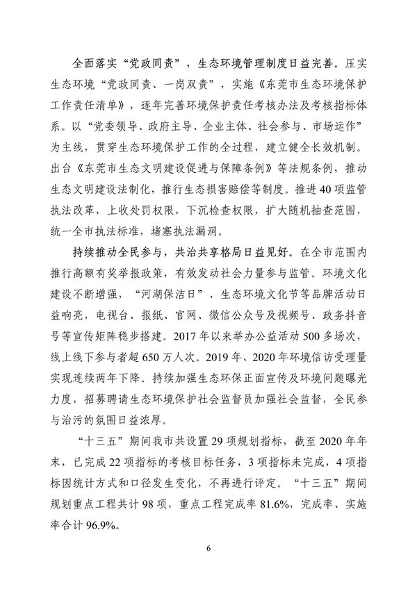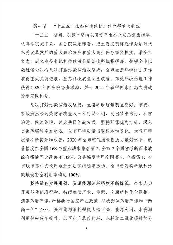 《東莞市生態(tài)環(huán)境保護(hù)“十四五”規(guī)劃》(東府辦〔2022〕21號)