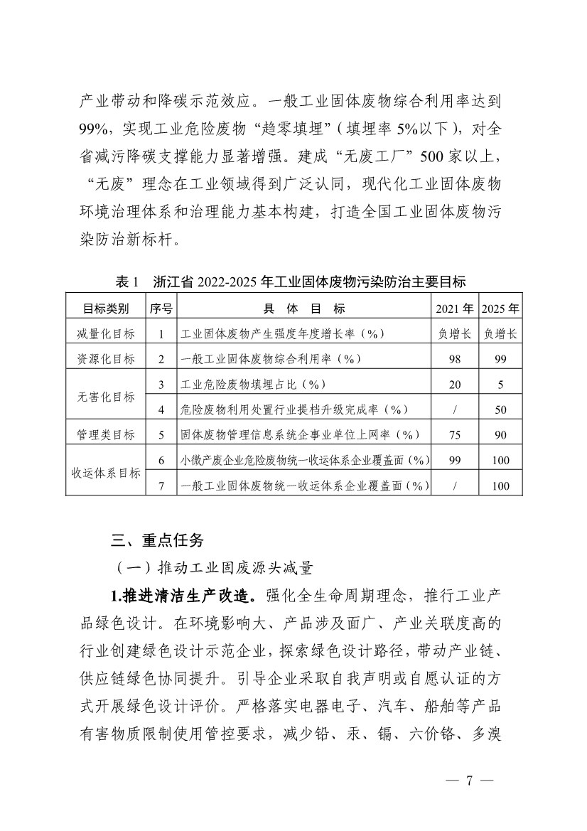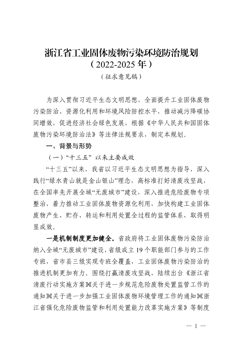 《浙江省工業(yè)固體廢物污染環(huán)境防治規(guī)劃(2022-2025年)》(征求意見稿)