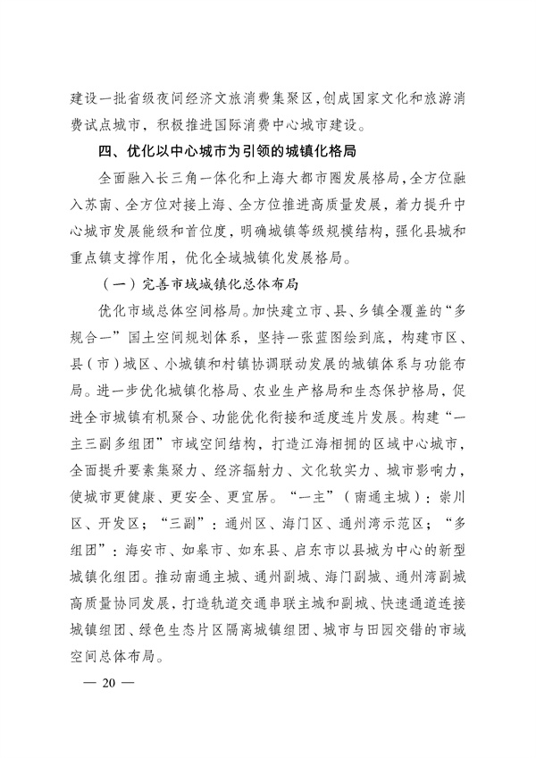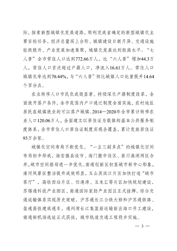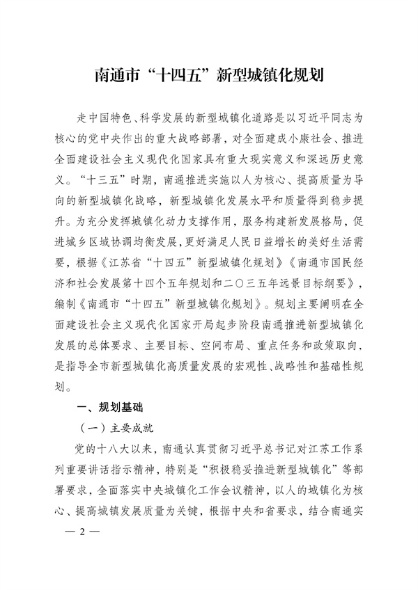 《南通市 “十四五”新型城鎮(zhèn)化規(guī)劃》