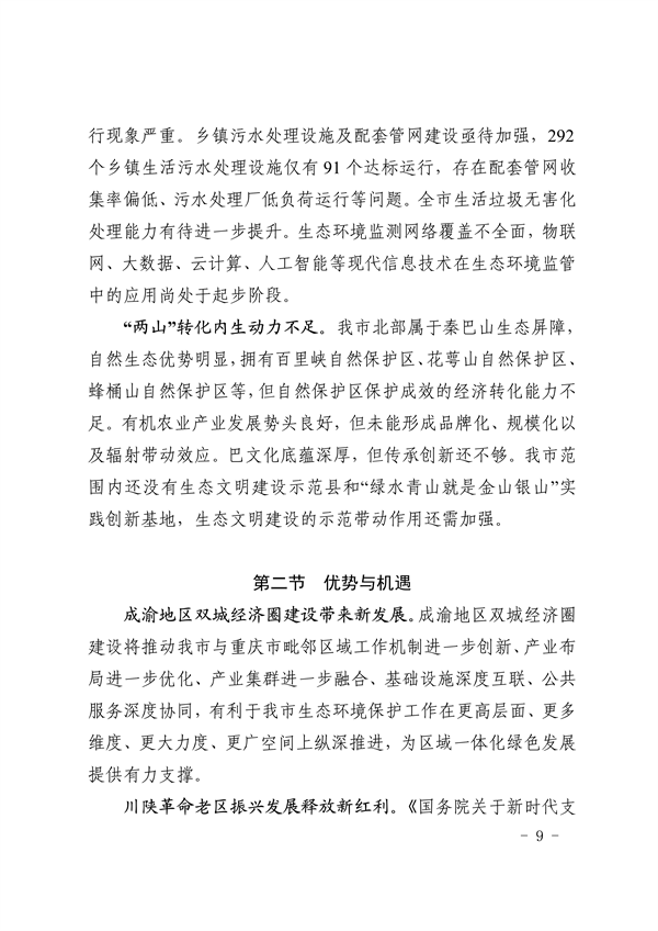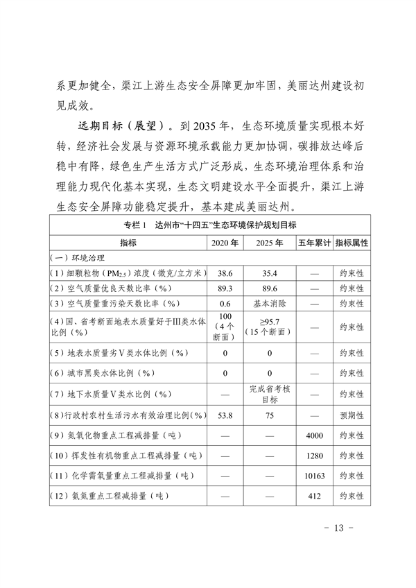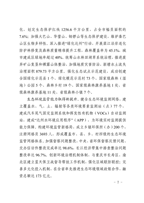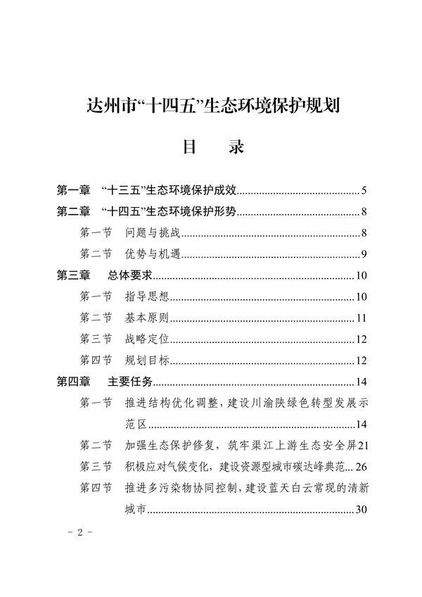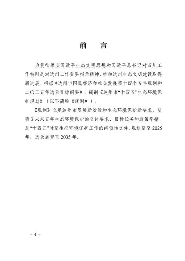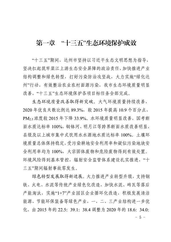 達(dá)州市人民政府關(guān)于印發(fā)《達(dá)州市“十四五”生態(tài)環(huán)境保護(hù)規(guī)劃》的通知