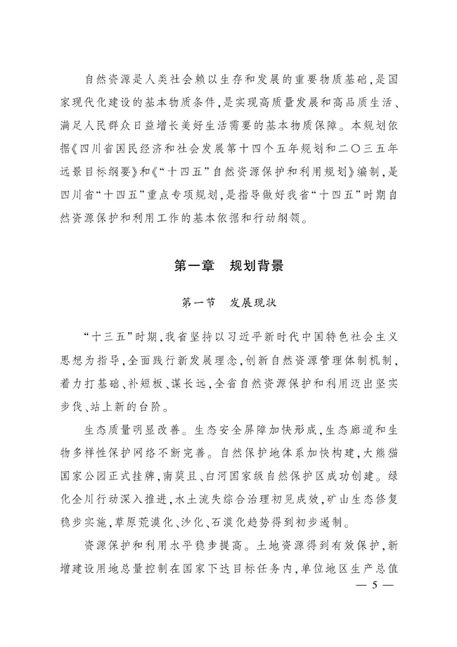 四川省“十四五”自然資源保護(hù)和利用規(guī)劃