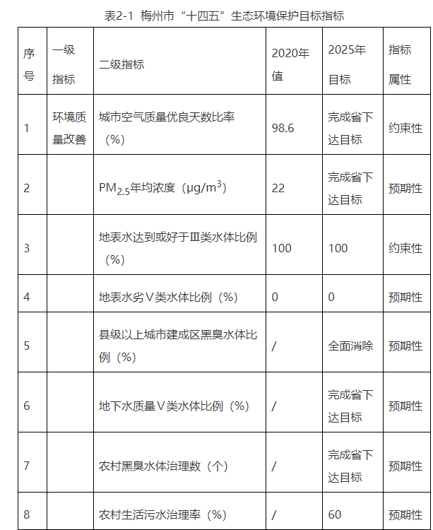 第三節(jié) 規(guī)劃目標(biāo)?梅州市生態(tài)環(huán)境保護(hù)“十四五”規(guī)劃