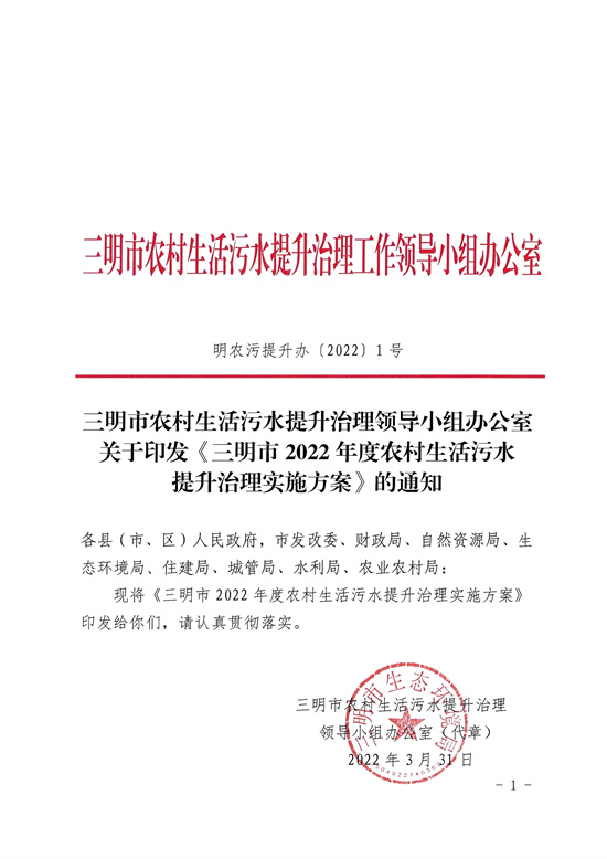 福建省發(fā)布<三明市2022年度農(nóng)村生活污水提升治理實(shí)施方案>的通知