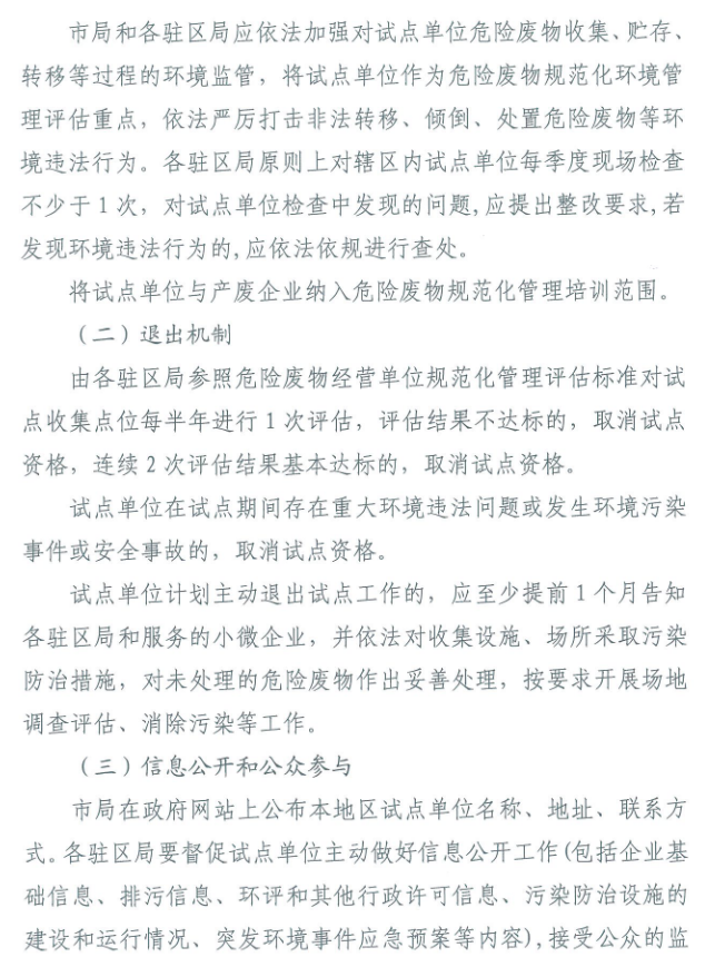 廈門(mén)市生態(tài)環(huán)境局印發(fā)廈門(mén)市小微企業(yè)危險(xiǎn)廢物收集試點(diǎn)工作方案的通知,推動(dòng)建立規(guī)范有序的小微企業(yè)危險(xiǎn)廢物收集體系,探索形成一套可推廣的小微企業(yè)危險(xiǎn)廢物收集模式,打通小微企業(yè)危險(xiǎn)廢物收集“最后一公里”,詳情如下: