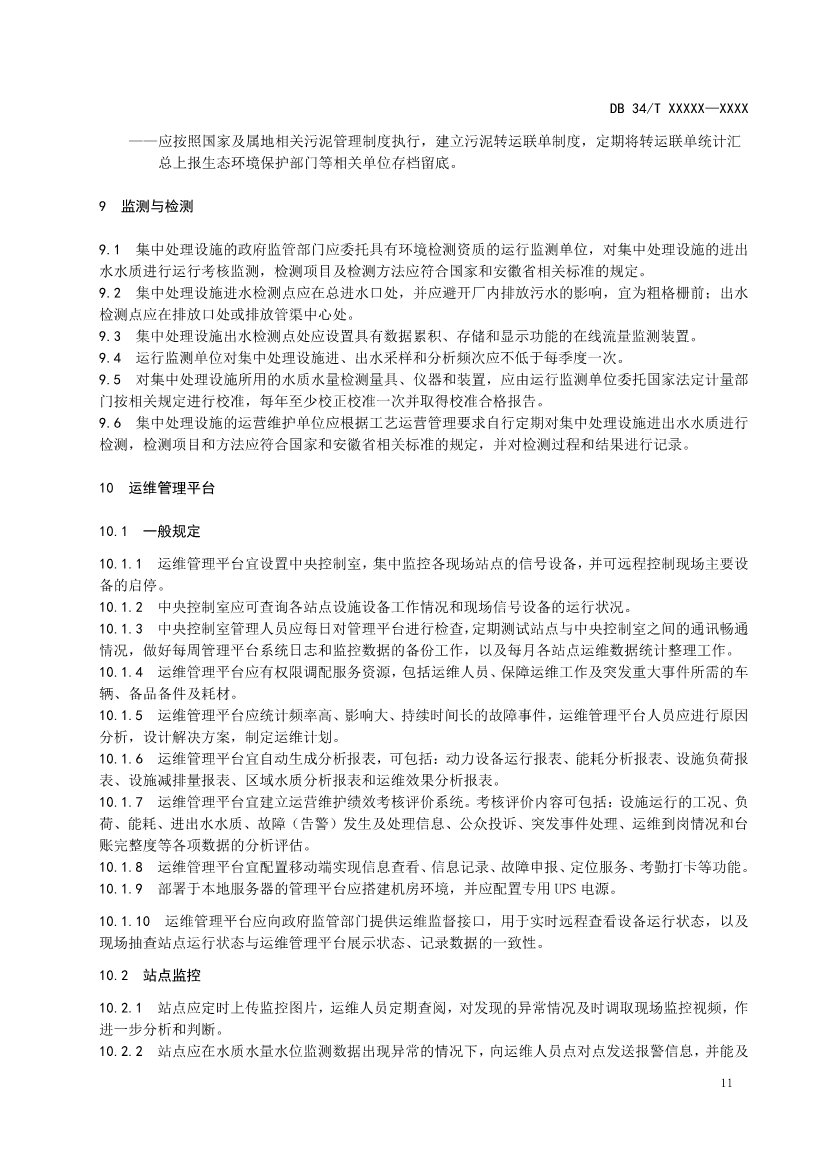 本文件規(guī)定了農(nóng)村生活污水集中處理設(shè)施運(yùn)營(yíng)維護(hù)與效能評(píng)價(jià)的要求,包括運(yùn)維管理體系、污水收集系統(tǒng)、污水處理系統(tǒng)、污泥處理處置、監(jiān)測(cè)與檢測(cè)、運(yùn)維管理平臺(tái)、效能評(píng)價(jià)等方面。
