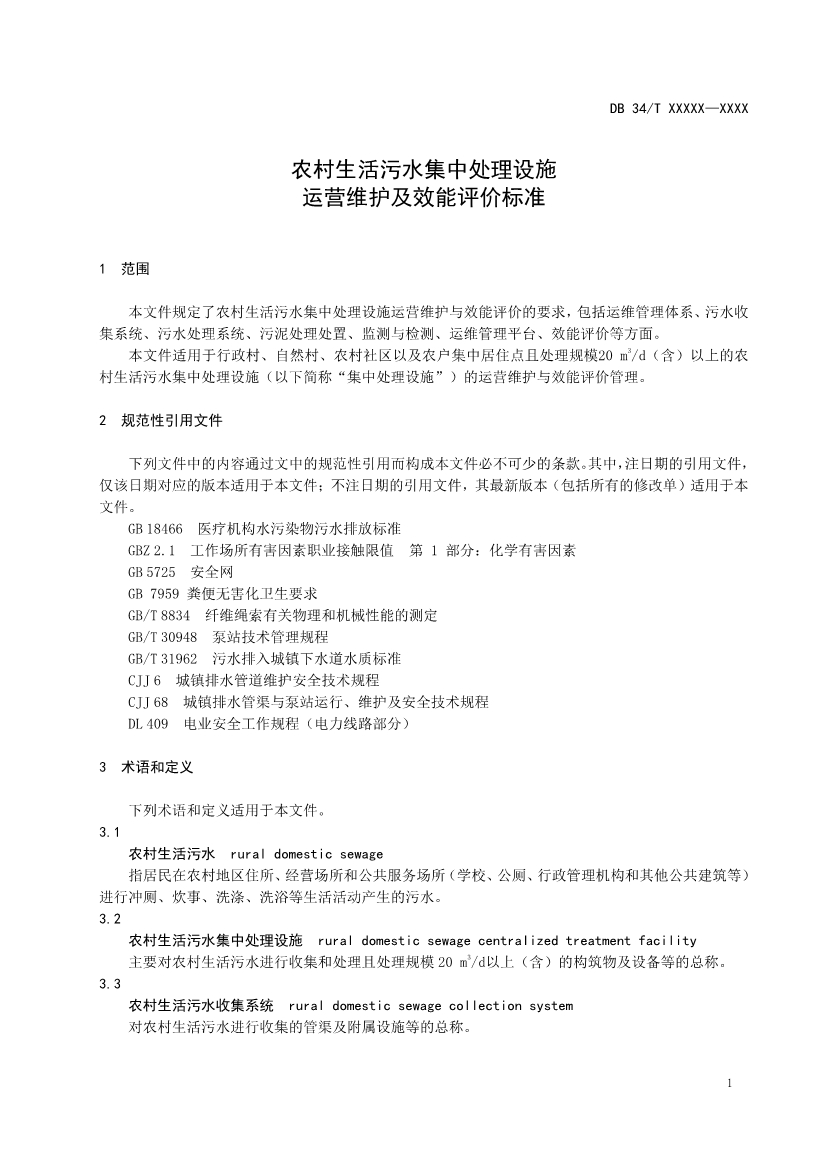 本文件適用于行政村、自然村、農(nóng)村社區(qū)以及農(nóng)戶集中居住點(diǎn)且處理規(guī)模20 m3/d(含)以上的農(nóng) 村生活污水集中處理設(shè)施的運(yùn)營(yíng)維護(hù)與效能評(píng)價(jià)管理。