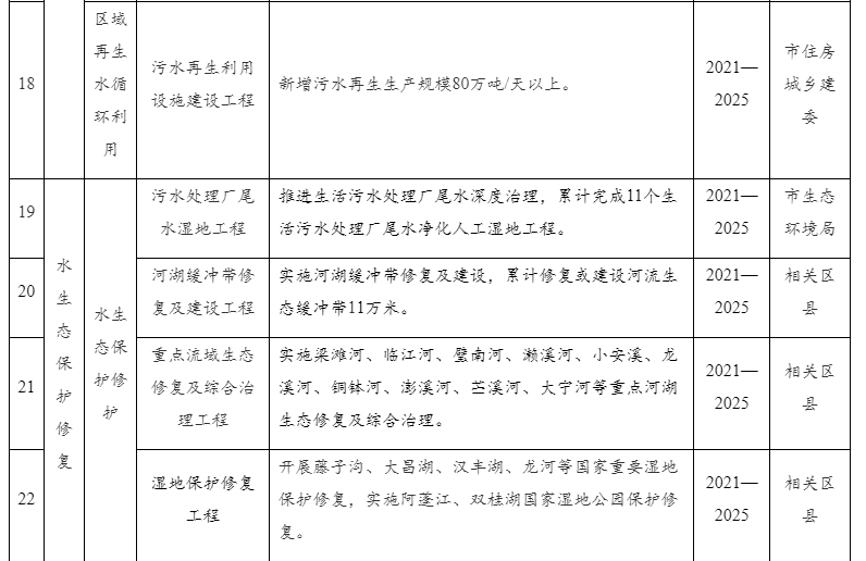 附表5重點(diǎn)項目表71《重慶市 水生態(tài)環(huán)境保護(hù)“十四五”規(guī)劃(2021—2025年)》