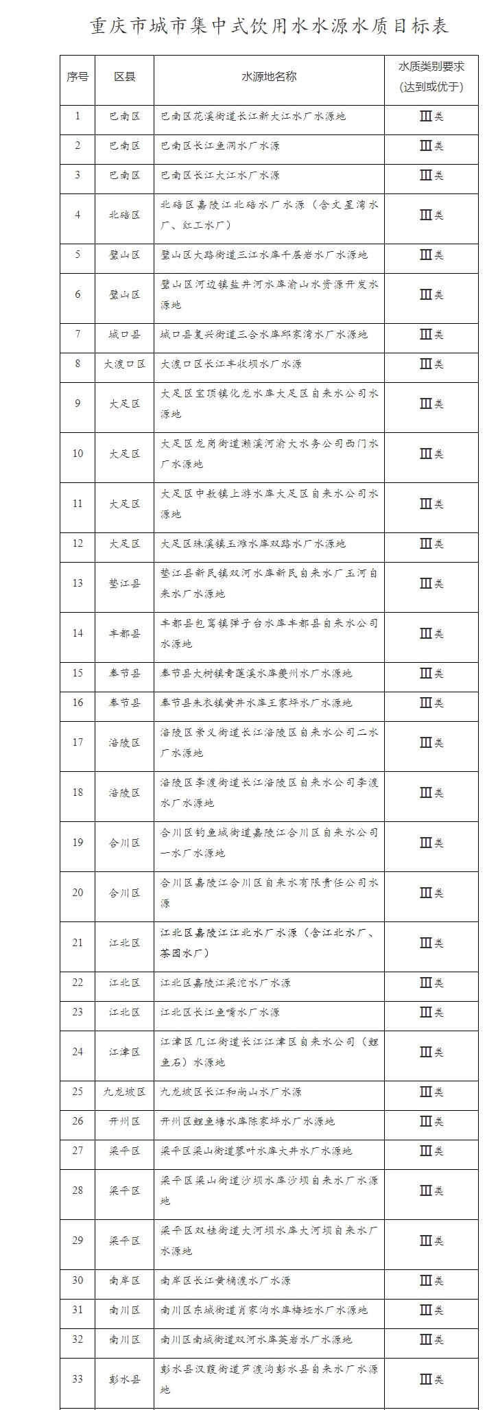 加強(qiáng)飲用水水源環(huán)境監(jiān)管。開展集中式飲用水水源地環(huán)境保護(hù)專項行動“回頭看”,落實(shí)定期巡查制度,加強(qiáng)水源地日常監(jiān)管。加強(qiáng)水源水、出廠水、管網(wǎng)水、末梢水的全過程管理。加大飲用水安全狀況信息公開力度,引導(dǎo)公眾監(jiān)督。加強(qiáng)地下水型飲用水源管控,對2個城市級地下水型飲用水水源保護(hù)區(qū)劃定補(bǔ)給區(qū),加強(qiáng)補(bǔ)給區(qū)地下水環(huán)境管理。建立健全川渝跨界集中式飲用水水源地風(fēng)險聯(lián)合防控體系,保障川渝跨界水源供水安全。強(qiáng)化部門合作,完善飲用水水源地環(huán)境保護(hù)協(xié)調(diào)聯(lián)動機(jī)制,提高水源地環(huán)境安全保障水平。《重慶市 水生態(tài)環(huán)境保護(hù)“十四五”規(guī)劃(2021—2025年)》
